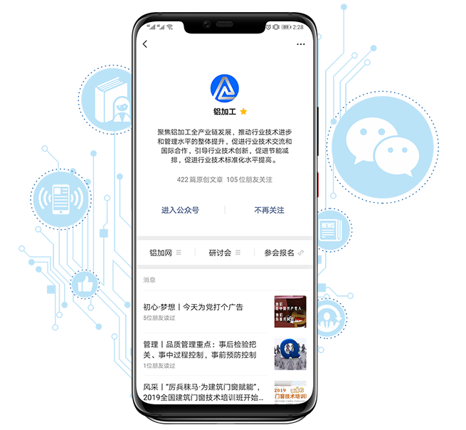 拥有专业粉丝30,000+,致力为铝加工行业人士提供更开放的技术交流平台,推动行业技术进步和管理水平的整体提升,更整合行业资讯、铝业微盟、品牌点赞、铝材杂志、互动社区等资源,是基于微信公众平台打造的品牌营销工具,企业能快速精准地推广品牌文化和微信公众号。