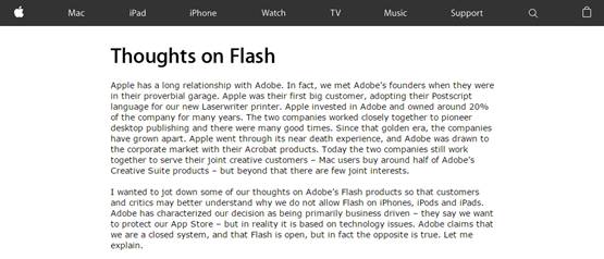 最后让我们缅怀一下乔帮主《Thoughts on Flash》的原文截图,和Flash说再见吧。