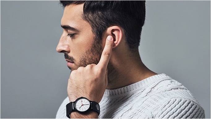 这是怎么做到的呢?很简单,把这个叫Sgnl的表带装在你任何一款手表上,你只要用手按住耳朵就可以听电话。