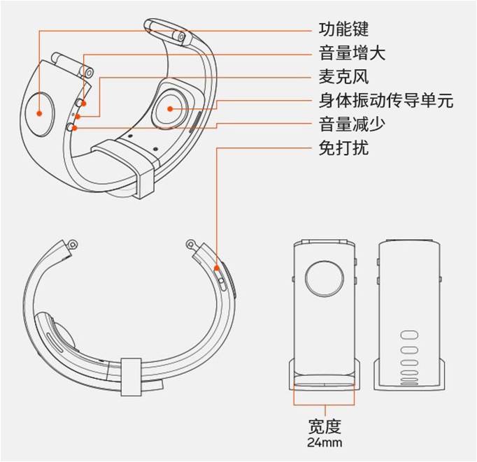 具体来说,Sgnl是通过蓝牙接收手机信号,再借助内部的身体振动传导单元(Body Conduction Unit : BCU)将声音通过你的手腕传到指尖。而在你用指尖按住耳朵的过程中,内耳封闭空间内就会创造被放大的声音。